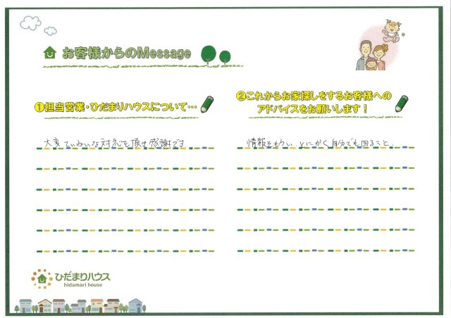 この度は住宅購入を弊社にご依頼いただきまして、誠にありがとうございます。