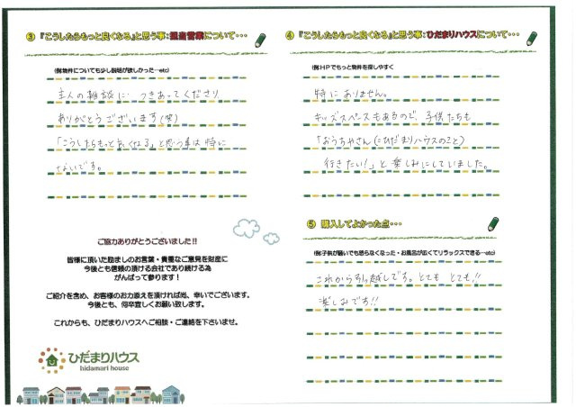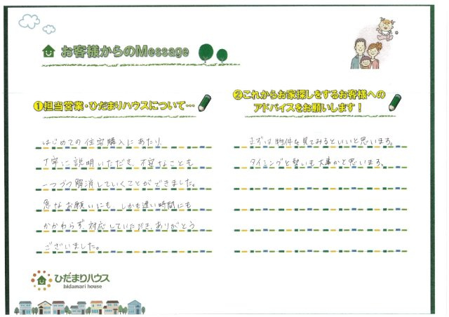 - これからお家探しをするお客様へのアドバイスをお願いします!