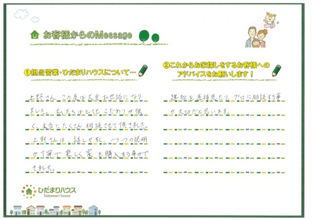 - これからお家探しをするお客様へのアドバイスをお願いします!