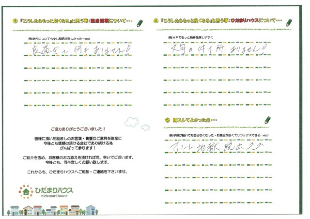 - これからお家探しをするお客様へのアドバイスをお願いします!